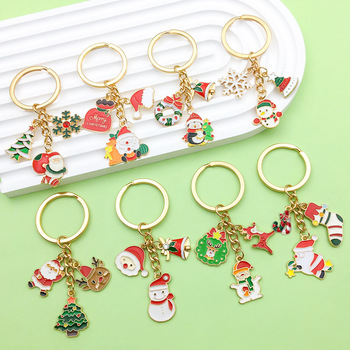 クリエイティブビンテージスタイルビンテージクリスマスツリーカラフルなスノーフレークキーホルダー新しいかわいいエナメルピンクバッグ装飾チャームメイド合金